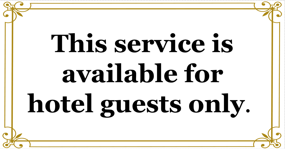 “hotel guests only”としていますが、“hotel”の部分をお宿やホテルの名前、それ以外の施設であれば施設名に変更することで、ホテル・旅館以外でもお使いいただける表現です。