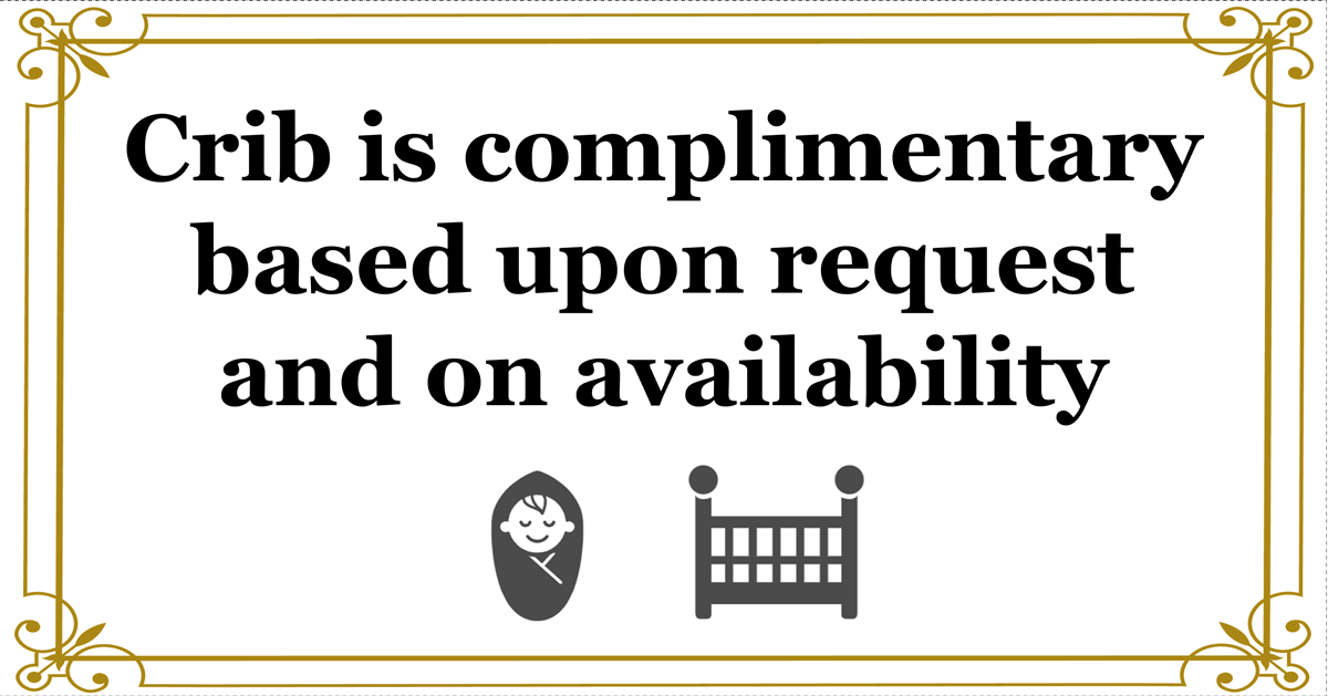 英語で『ベビーベッドをご要望の場合/在庫状況に応じて無料で貸し出しいたします』