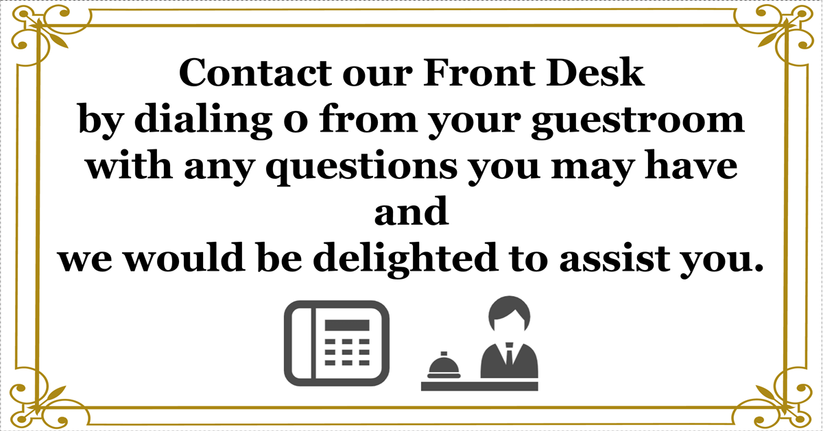 Contact our Front Desk by dialing 0 from your guestroom with any questions you may have.