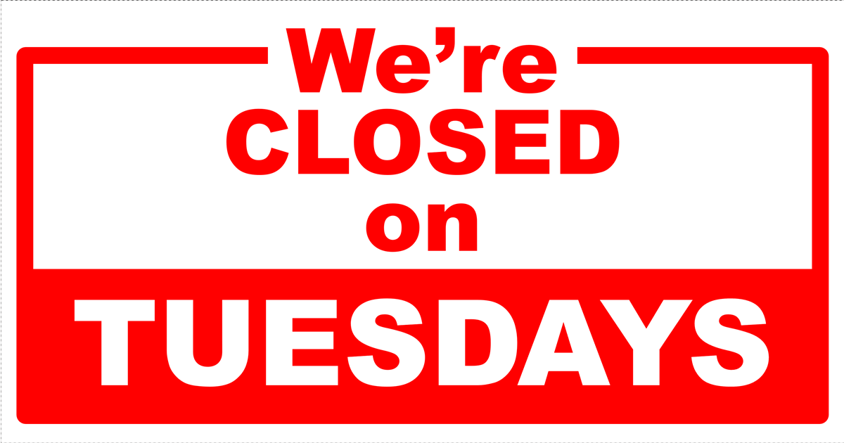 火曜日が定休日のお店であれば、この画像を印刷してそのままお使いいただけるように作りました。