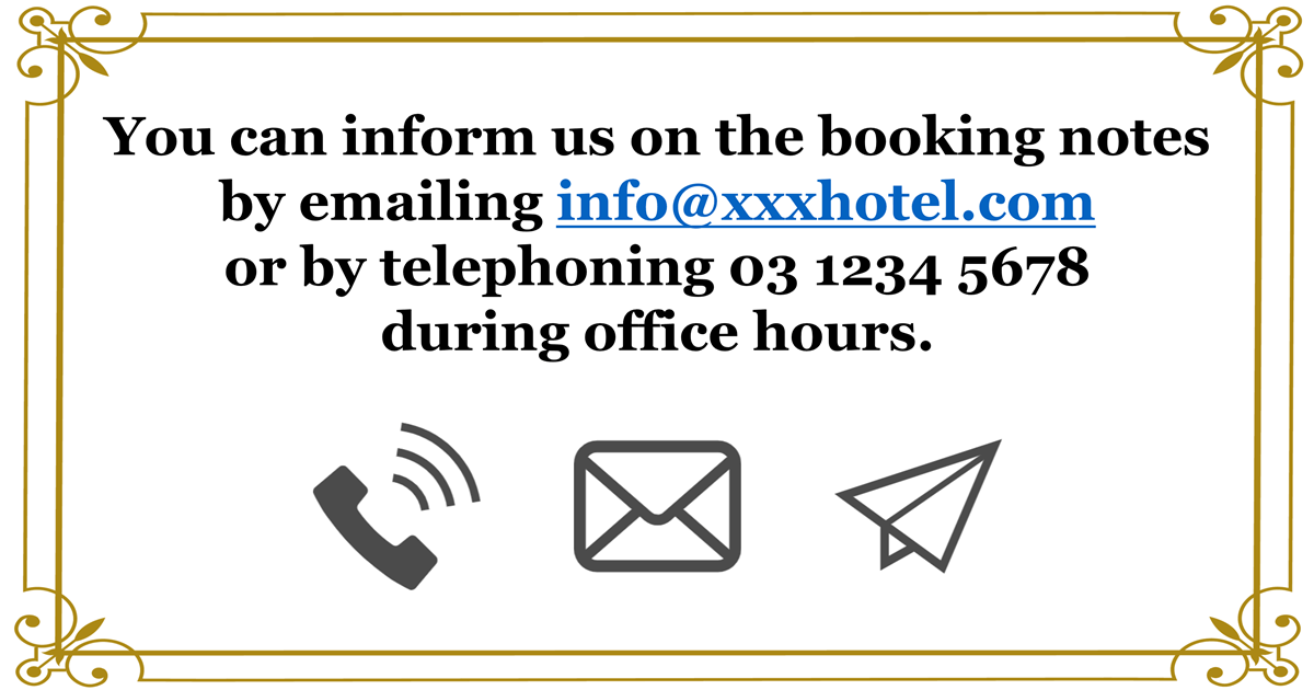 You can inform us on the booking notes by emailing info@xxxhotel.com