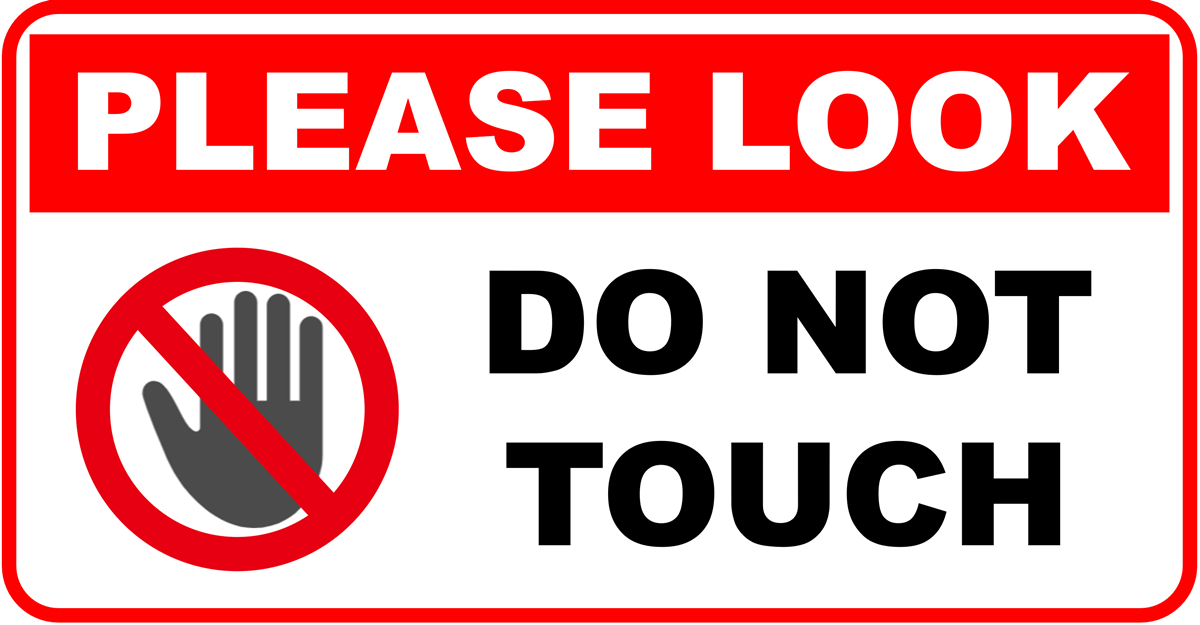 今回は“please look = 見て”とつけ加えたことで、展示品の近くに張り出す限定の使い方になっていますが、シンプルに“Do not touch = 触れないで”だけでも大丈夫です。その場合は大きくデカデカと“DO NOT TOUCH”と書きましょう。